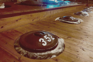 蓋の淵にビニールが被せてあるのは、天使の分け前(酒が蒸発すること)を少なくするため。古い手作りの甕はフタの気密性が当然ながら完全と言えません。天使の分け前(焼酎は蒸発して分量が減ります。天使が飲んでしまうことに例えてそれを「天使の分け前」と呼ばれます)が、多ければその分酒は美味しくなるとも言いますが、全て天使に呑まれては元も子もありません。天使が美味しくした、6年の”時”をじっくりと味わいましょう。