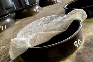 9トンものタロイモを乗せた大きなトラックが、高い煙突の聳える街道沿いの蔵にたどり着く。ハワイ・カウアイ島からオアフ島・東京を経由し、はるか太平洋を越えて訪れたタロイモのカートンが、この日次々と運びこまれました。ハワイの取材メディアや、神官”カフー”の来日に先駆けて”来日”した神聖なタロイモ。カウアイの気温とまるで違う芋焼酎の聖地・真冬の鹿児島で仕込みの日を待ちます。